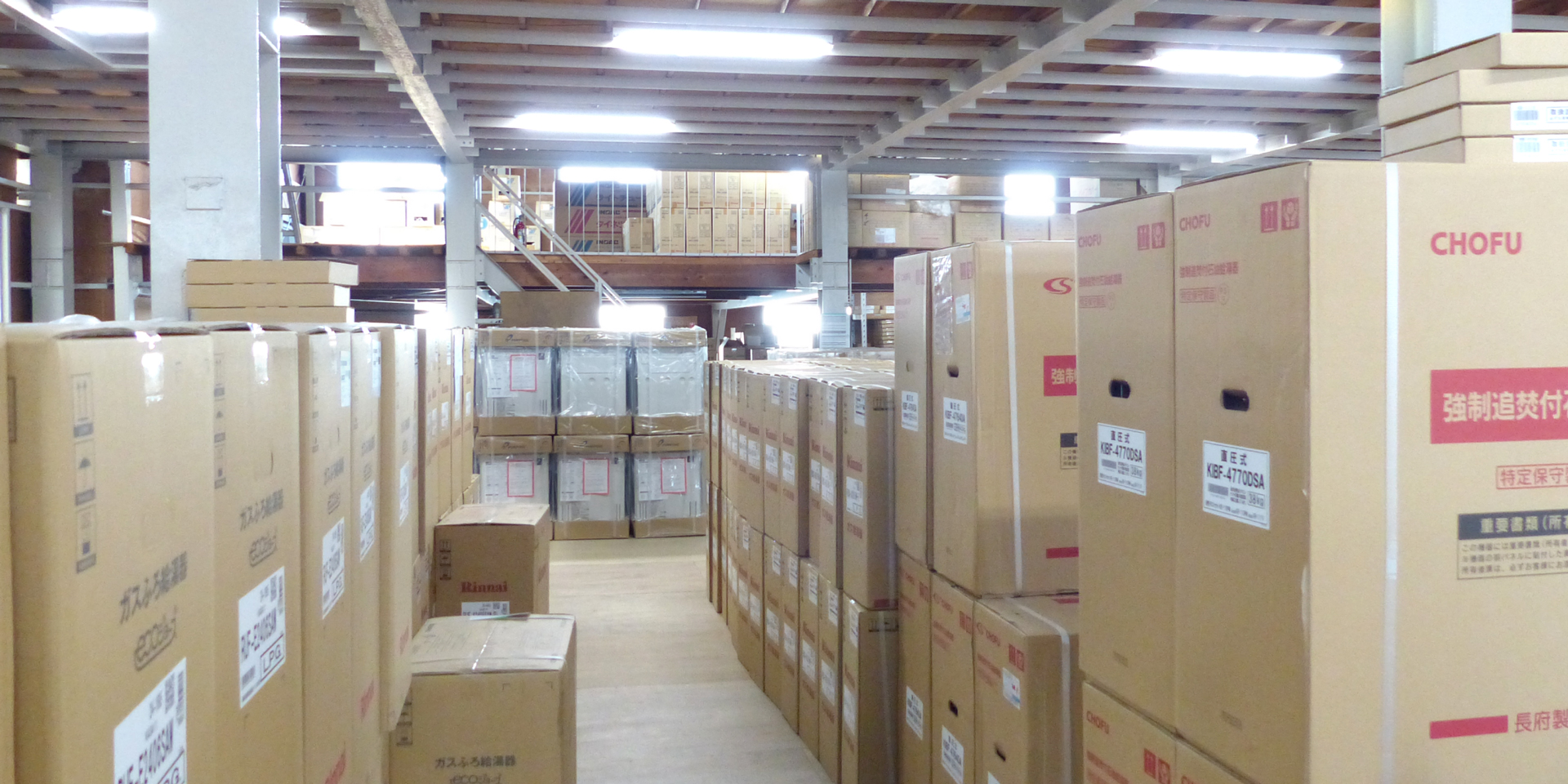 弊社は、地域の工務店様、建設会社様、ガス・燃料店様など、住まいづくりやメンテナンスの最前線でビジネス展開をされるお客様にご愛顧いただいております。このようなプロフェッョナル向け卸売事業者の責務として、弊社は自社倉庫にしっかりと在庫を持ち、必要な時に、必要なモノが届けられる「納品力」にこだわった供給体制を構築しております。